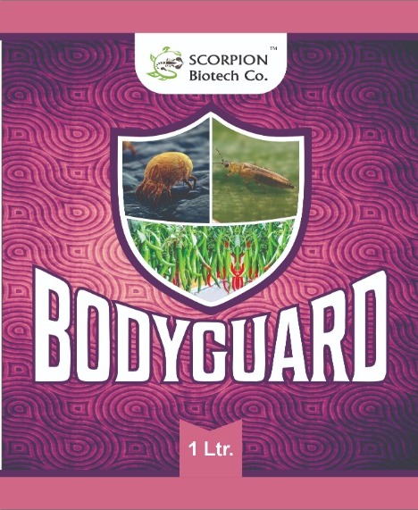 Bodyguard is a bio-based crop protector specially formulated to manage thrips, mites, red mites, and other sucking pests that cause severe damage to leaves, flowers, and fruits. Derived from naturally occurring wild plant alkaloids and essential bio-compounds, Bodyguard disrupts pest feeding and reproduction while enhancing plant resilience against biotic stress.